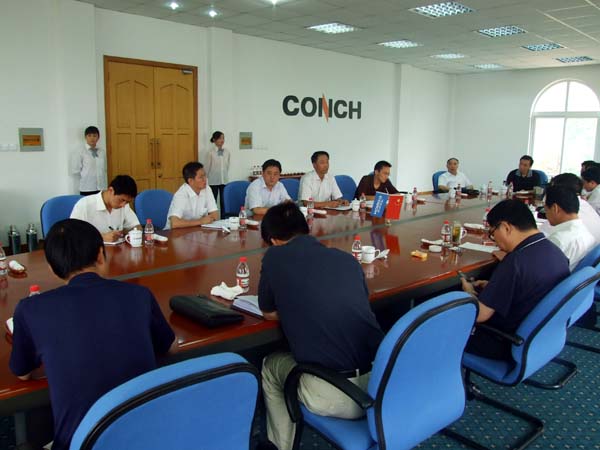 在公司二楼会议室,调研人员听取了枞阳公司生产经营和节能减排工作汇报。汇报会上,朱忠平副总会计师汇报了公司总体经营情况,重点汇报了海螺在节能降耗上所做的工作。公司积极响应国家“大力发展循环经济,全力落实科学发展观”的号召,积极着手余热发电项目的规划和建设,目前已投产的机组运行状况良好,经济和节能环保效益非常明显。与此同时,公司还统筹安排了大型风机的变频改造工作,旨在进一步降低生产线的电能消耗,目前已在省内各大基地陆续完成了变频改造,效果十分显著,改造后的吨熟料电耗平均降低2kWh。在治污减排上,公司一贯高度重视环境保护工作,从建设和谐社会、构建和谐企业的高度,积极承担大企业应该承担的社会环保责任,项目建设坚决按照国家有关规定完成项目报批和环保验收手续,已投运项目坚决执行国家环保标准,并投入大量资金在生产线上安装在线监测设备。