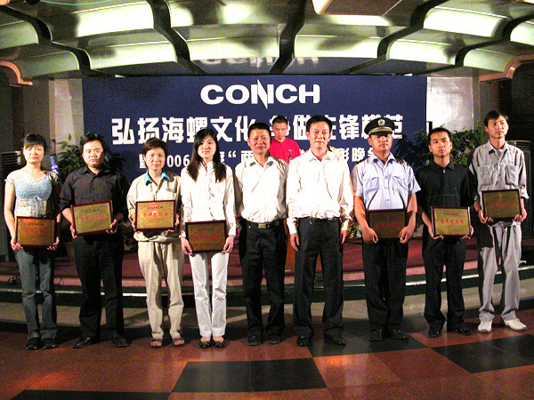为进一步贯彻落实公司领导近期关于“充分发挥公司党组织、共青团及工会的正确引导工作,持续加强企业文化建设,不断提升员工对海螺的认同感和忠诚度”的指示精神,营造浓厚的海螺文化氛围,加速新进员工融入海螺的进程,同时表彰在实现工厂“三大任务”目标中涌现出来的一批优秀团干、优秀团员、先进团组织和青年文明岗,日前,宁国水泥厂团委在海螺文化宫举办了“弘扬海螺文化 争做先锋模范”暨2006度共青团“两先一优”表彰晚会。