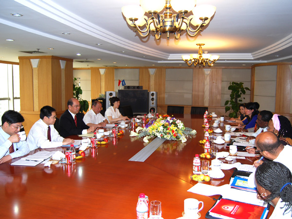 5月21日,集团公司董事长郭文叁在上海华能大厦会见了南非共和国NHBRC代表团一行。在双方友好融洽的气氛中,就国际水泥市场发展趋势、南非经济发展前景及相互之间的合作等事项进行了交流,会后,郭董事长陪同代表团一行参观了PVC样窗。股份公司副总经理章明静兼董秘、董秘室主任杨开发、集团发展部部长杨培林、海门海螺公司总经理刘毅、上海海螺建材国际贸易公司副总经理汪学森、建材贸易部经理袁玲等陪同参加了会见。