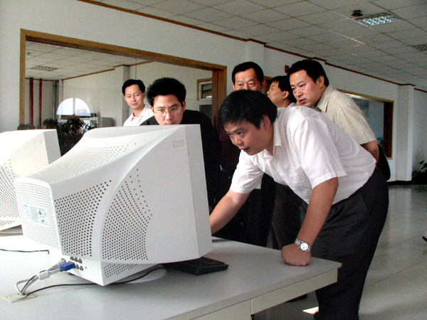 公司常务副总经理李群峰与唐副主席一行仔细察看窑体运行数据