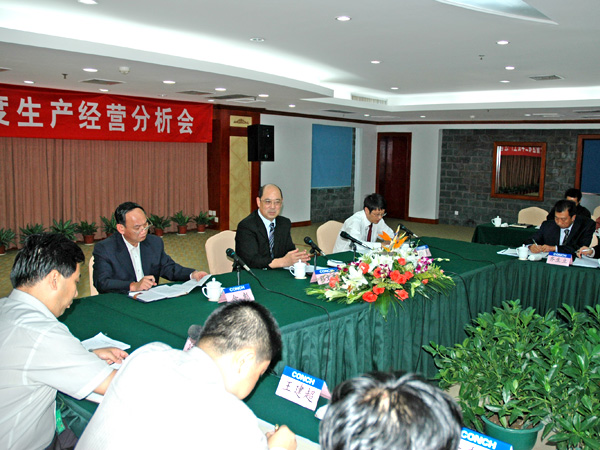 为认真总结三季度工作,明确四季度任务,超前谋划2008年生产经营综合计划的编制工作,10月9-10日,海螺水泥股份公司安徽区域三季生产经营分析会在芜湖海螺国际大酒店隆重召开,公司领导、各部室负责人和业务主管、省内各子公司负责人及部分中层管理人员共90余人参加了会议。董事长郭文叁到会并作了重要讲话。