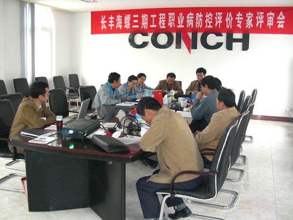 10月17日由安徽省疾控中心、省卫生厅卫生监督所、安徽医科大学、合肥市疾病预防控制中心等专家组,对长丰海螺公司三期工程职业病防治情况进行了组现场审核,长丰海螺公司总经理助理杨兰彬、胡国正等接待了审查组一行。
