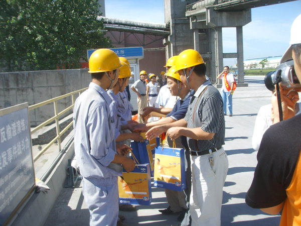 上午9点20左右,烈日当空,气温高达35度,由中国移动公司代表、张家港市“新市民爱心互助联盟”会员代表、广播电台和电视台记者以及市民代表共20余人组成的“送清凉”小组来到公司码头,为坚守在生产一线作业的员工送来了西瓜、防晒霜、香皂、矿泉水、人丹、风油精等防暑用品以及写满爱心祝福的卡片。公司领导率一线员工纷纷向“新市民爱心互助联盟”的慰问致以衷心的感谢,并一致表示一定坚守自己的岗位,为城市的繁荣发展贡献自己的一份力量。