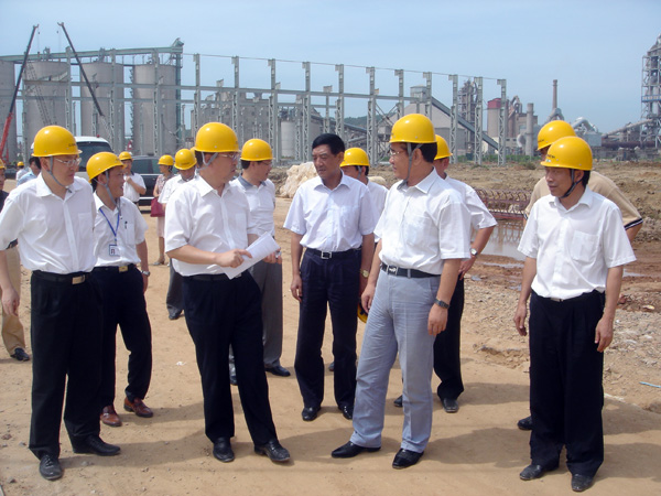 任海深副省长边走边看,在现场听取了中日合资项目进展情况、新型节能装备制造工艺、产品定位以及余热发电项目实施的情况汇报。