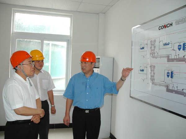 考察过程中,王金山省长边走边看,兴致勃勃,了解余热发电原理和气轮机运行情况。郭文叁等领导详细介绍海螺开发实施余热发电的技术创新及行业优势,纪勤应汇报了以海螺集团为主要实施单位的“十一五”国家科技支撑计划“工业余热节能利用关键技术与装备”重点项目,通过国家科技部组织的可行性论证,以及余热发电技术在行业推广运用等情况。