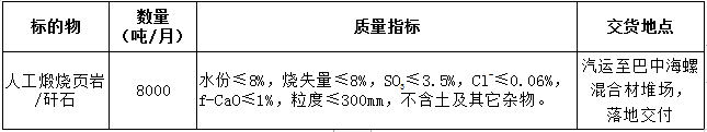 根据巴中海螺生产经营需求,现对水泥生产用人工煅烧页岩采购业务进行公开招标,为体现公平、公正、公开、透明的原则,现将招标相关事宜公告如下: