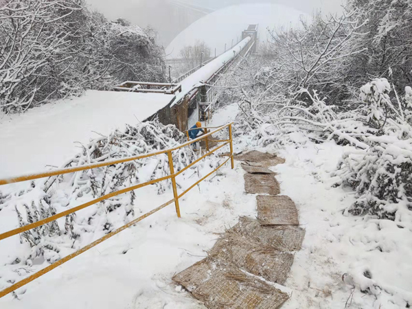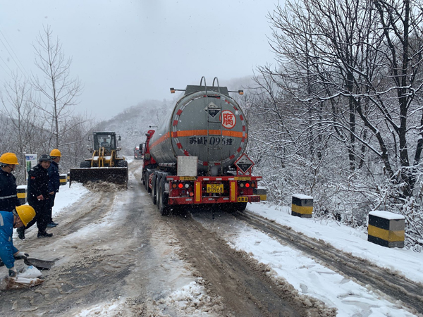 公司各部门积极投身到大雪天气的应对中,用实际行动保障公司安全生产运行。办公室、生品处、制造分厂安排人员在主要物流道路上洒工业盐,组织矿山分厂工程车辆铲除物流道路上的积雪,确保原材料、熟料发运以及氨水等运输车辆的安全通行。矿山、制造和水泥分厂等部门为主要巡检通道铺设草垫,保障员工巡检安全。