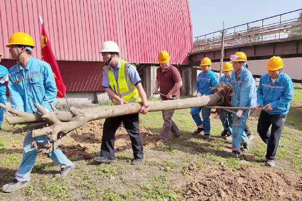 上午9:30,在公司党总支委员、副总经理赵敬龙同志的带领下,党员同志们各个热情高涨,有的挥锹挖坑、扶植苗木,有的培实新土、灌溉浇水,各个环节衔接有序,分工协作、配合默契,发扬了海螺人不怕苦、不怕累的敬业精神;众人齐心效率高,转眼间,一颗颗种好的苗木整齐地显现眼前,犹如英姿飒爽的战士守卫着一方家园。