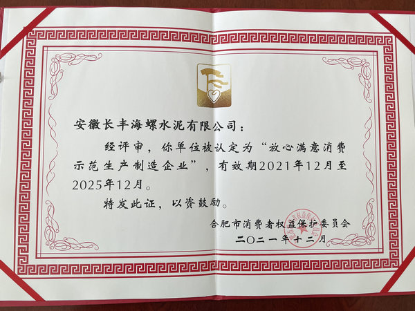 本次荣获“合肥市放心满意消费示范生产制造企业”称号,既是对长丰海螺多年来在诚信经营和产品质量方面取得成绩的肯定,也是对公司未来发展的鞭策和鼓励。公司将以本次表彰作为新的起点,珍惜荣誉、再接再厉、不断优化完善,继续为广大消费者提供高品质的放心产品,持续打造放心消费品牌。(文/图 胡慧敏)