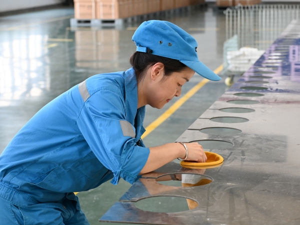 在铜陵环境的滤袋生产线上,质检员正进行每日的巡检。她随手抽检一条刚生产的半成品,边测量边向身旁的新同事解释道:“你看,从半成品到成品出库,我们设了“半成品过程检+成品入库检+产品发运检”三重质量防线,我这第一关最关键。”她指向实时更新的数据看板,“像幅宽这种关键尺寸,现在控制得越来越准,所以整体的废品率才能稳定控制在5.58%,好质量才是咱们最大的底气”。