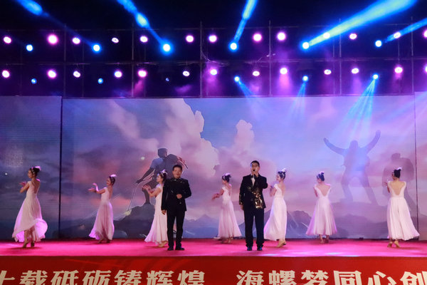晚会在北流海螺主要负责人陈维保的致辞中拉开帷幕。节目内容融合民族特色与现代艺术,深情表达出海螺人对祖国的热爱、对事业的坚守以及对未来的美好期待。兴安海螺带来的《我爱你中国》传递出炽热的爱国情怀;隆安海螺的民族舞蹈《节节高》以优美舞姿象征水泥主业蒸蒸日上;凌云通鸿公司的《瑶鼓声声迎客来》以激昂鼓点展现民族团结与开放胸襟;兴业海螺的歌伴舞《壮志在我胸》抒发了海螺人投身实业、锐意进取的豪情;扶绥海螺的一曲《倔强》唱出了攻坚克难的坚韧精神;兴业海螺环保公司的诗朗诵《二十载征程筑梦 绿动海螺谱新篇》,呈现了公司在环保领域的持续探索与成就;广西海螺环境科技有限公司的《Kpop舞蹈串烧》则展现出新材料产业蕴含的创新活力;北流海螺员工自编自演的三句半《海螺情、海螺颂》,深情讲述了海螺各条战线上的奋斗故事。整台晚会节目形式多样、精彩不断,赢得阵阵掌声。