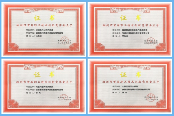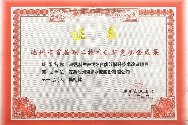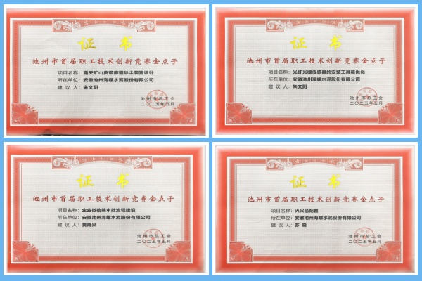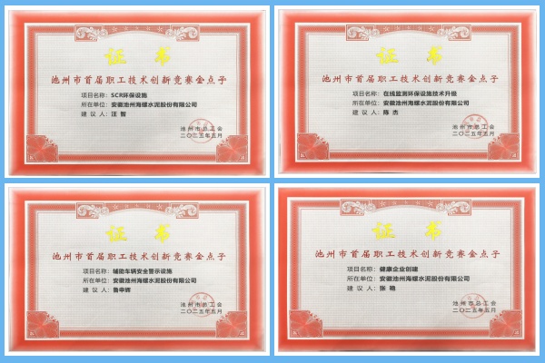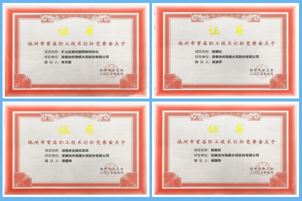 2025年11月,池州海螺荣获池州市总工会颁发的多项证书嘉奖,以表彰其在池州市首届职工技术创新竞赛中所取得的优异成绩。