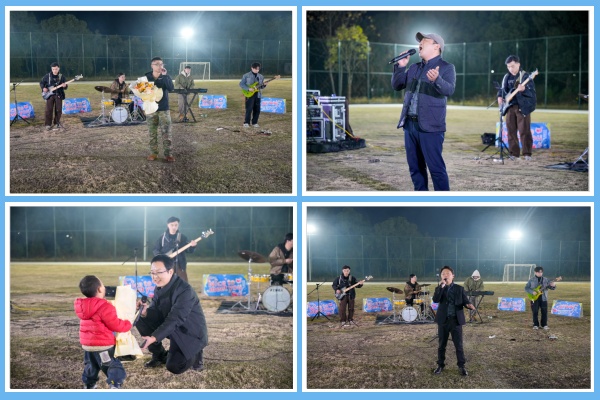 夜幕初垂,活动在激昂的乐队演奏中拉开序幕。架子鼓、贝斯、键盘的旋律迅速点燃了全场热情,来自水泥分厂的张勇以一首《一生不变》正式开启整场音乐节的篇章。随后,来自不同分厂的多位员工相继登台,一展歌喉,首首经典曲目演绎得深情动人,台下掌声热烈,大家挥舞的荧光棒汇聚成一片璀璨星海。
