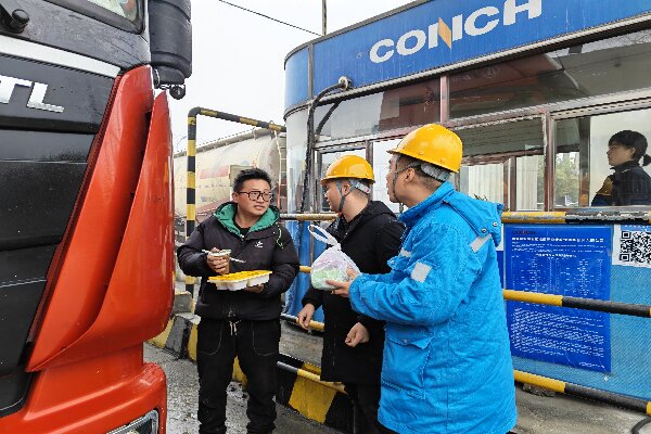 当工作人员将一碗碗冒着热气的腊八粥和饭菜递到驾驶员手中时,不少人当场打开品尝。奔波了一上午的张师傅则一边吃着快餐一边说:“天这么冷,能吃上热饭热粥太贴心了,六安海螺真是把我们当家人看待。”