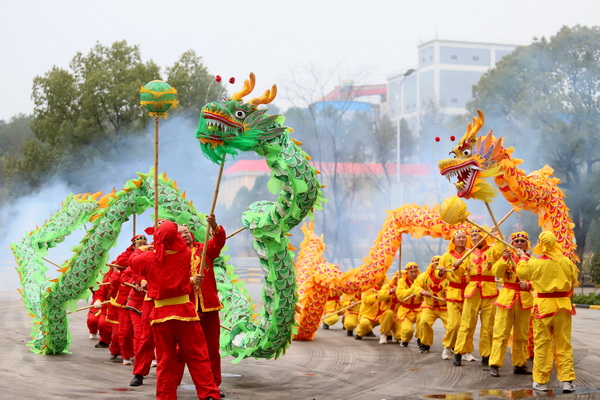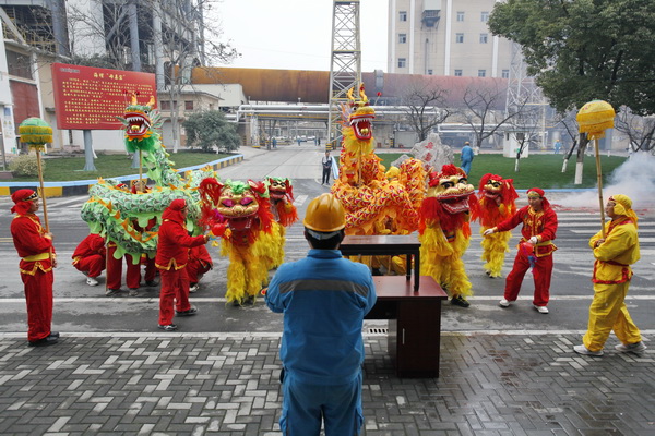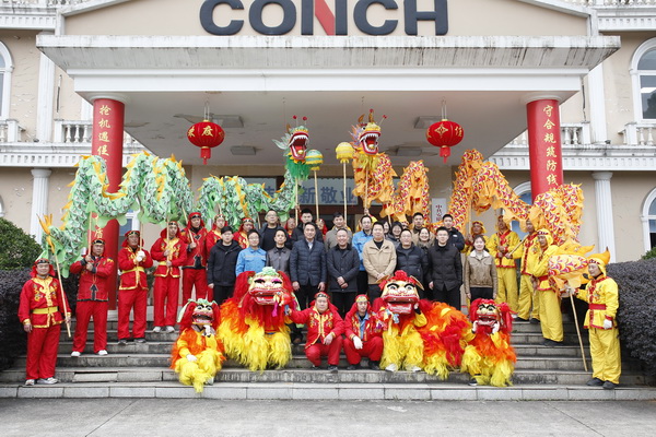 下午,龙狮队凯旋宁国水泥厂,在“功勋窑”、培训中心等承载企业历史与未来的标志性地点进行了精彩表演。随后,队伍前往海螺环保、海创绿能及宁昌塑品等在宁兄弟单位进行慰问演出,将马年“万马奔腾、前程似锦”的美好祝福送到每一位员工心中。
