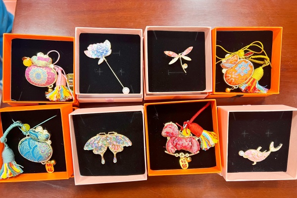 非遗宋锦挂件、非遗螺钿胸针