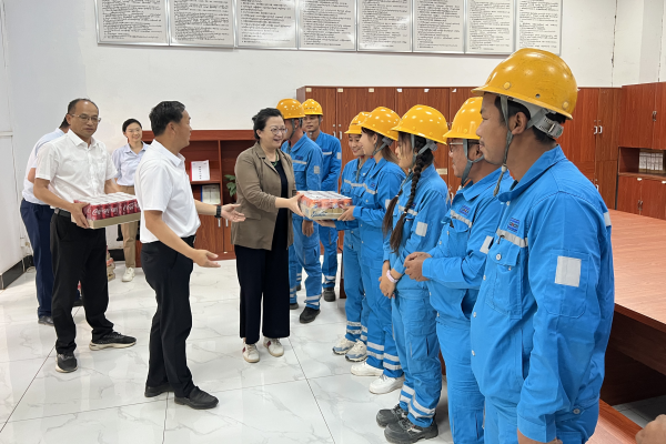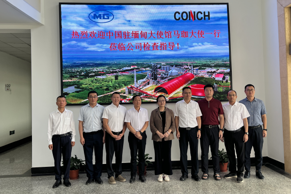 3月12日下午,中国驻缅甸大使马珈一行7人到缅甸海螺检查指导工作,参观了公司生产现场,看望慰问了现场一线员工,在办公楼会议室举行了座谈交流。缅甸区域执行总裁尹小明率领公司班子热情接待了大使一行。