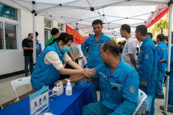 启动仪式上,与会领导共同宣布活动正式启动。现场同步开展职业健康科普培训、公益义诊、防护用品展示、宣传资料发放等多项活动。自治区“百千万”职业健康科普专家为企业负责人及职业健康管理员开展专题授课,围绕职业病防治法规、粉尘与噪声等危害防控、健康管理规范等内容精准讲解,助力提升企业管理水平与职工防护能力。扶绥县人民医院、中医院医护团队现场提供健康咨询、体检筛查等义诊服务,公司职工积极参与、踊跃咨询,切实增强健康防护意识与技能。